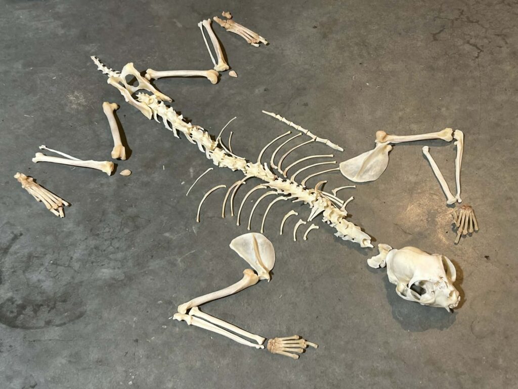 This is the skull and skeleton of a domestic cat!