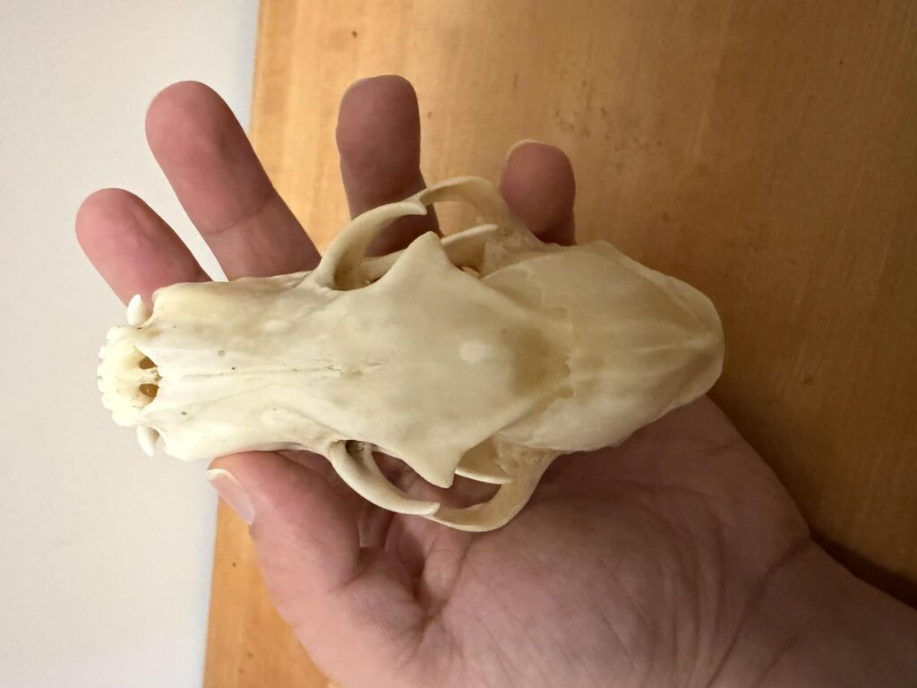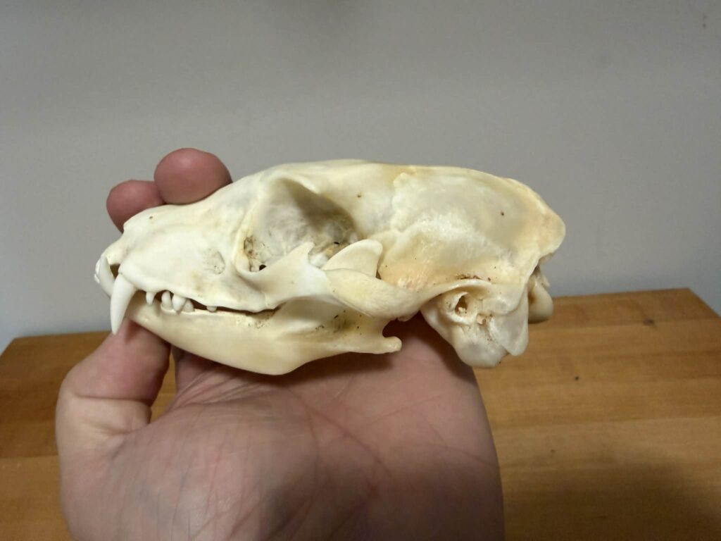 The aardwolf is a small, striped, insect-eating mammal native to Africa. It is actually a species of hyena: the smallest extant species and the last surviving member of the “dog-like” hyena lineage. Hyena skulls are highly coveted and getting harder to find. In our experience, aardwolves are rarer than spotted hyenas – we’ve only ever had a few examples.