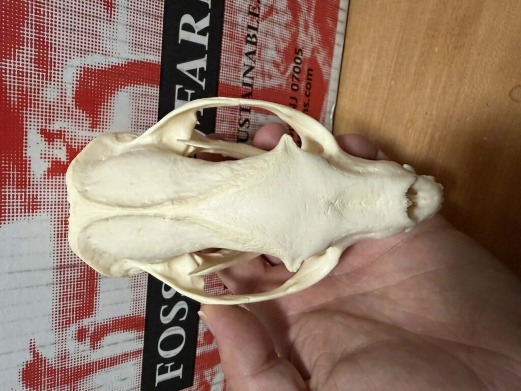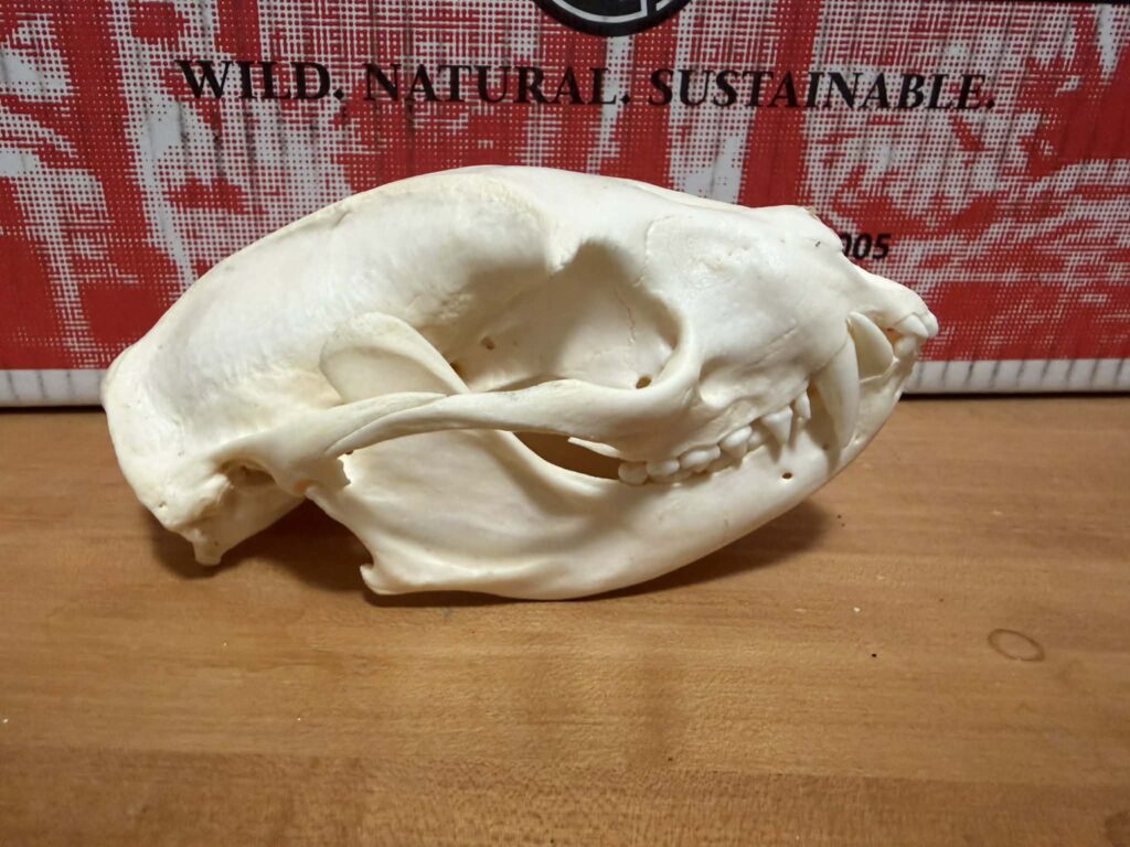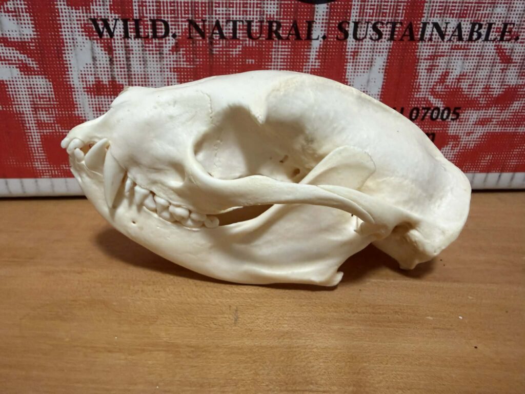 The binturong or bearcat is a large and unique viverrid native to South and Southeast Asia. It is famous for being one of the largest species of viverrid (alongside the African civet) and for having a popcorn-like scent. The viverrids are a family of feliform (cat-like) carnivores. Binturong skulls are very rare and highly coveted in collections. We have only seen a handful available ever!