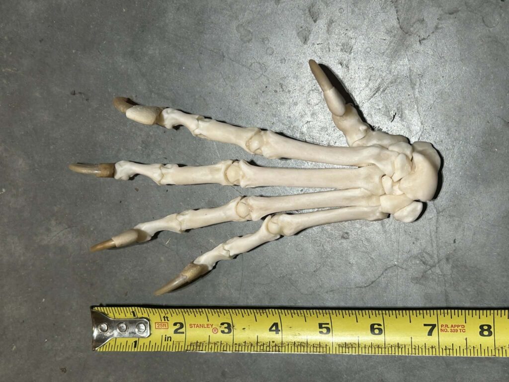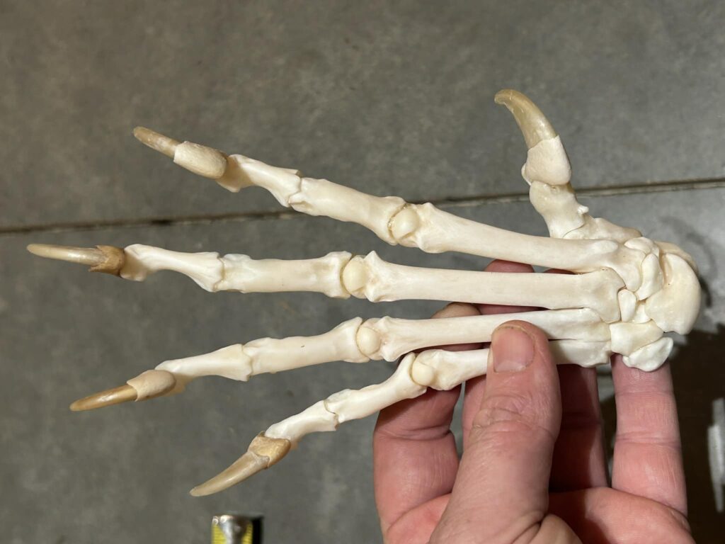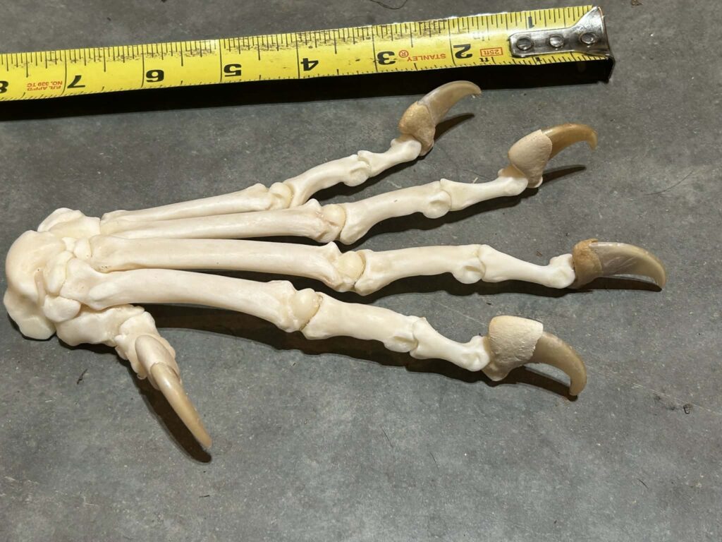 This is a gorgeous complete example of the left front paw of a cougar. It has been sturdily articulated with epoxy and is a large example with huge hooked claws. This piece is in beautiful condition with all bones present. Please review all pictures and description for condition.