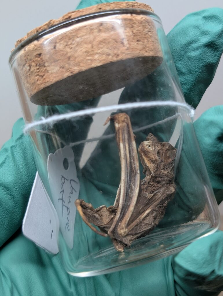 NOTE: We would normally not support selling bat products, as many species are protected or unethically collected. However, this piece is a captive individual from an unprotected species and came from Skulls Unlimited, so we are confident it was sustainably sourced.