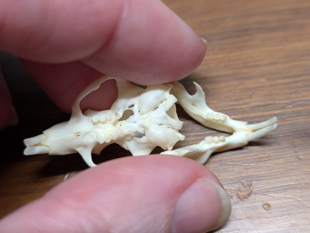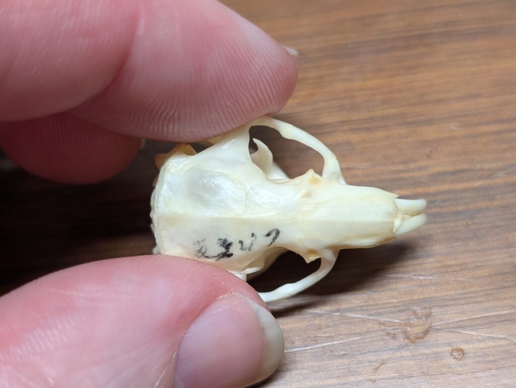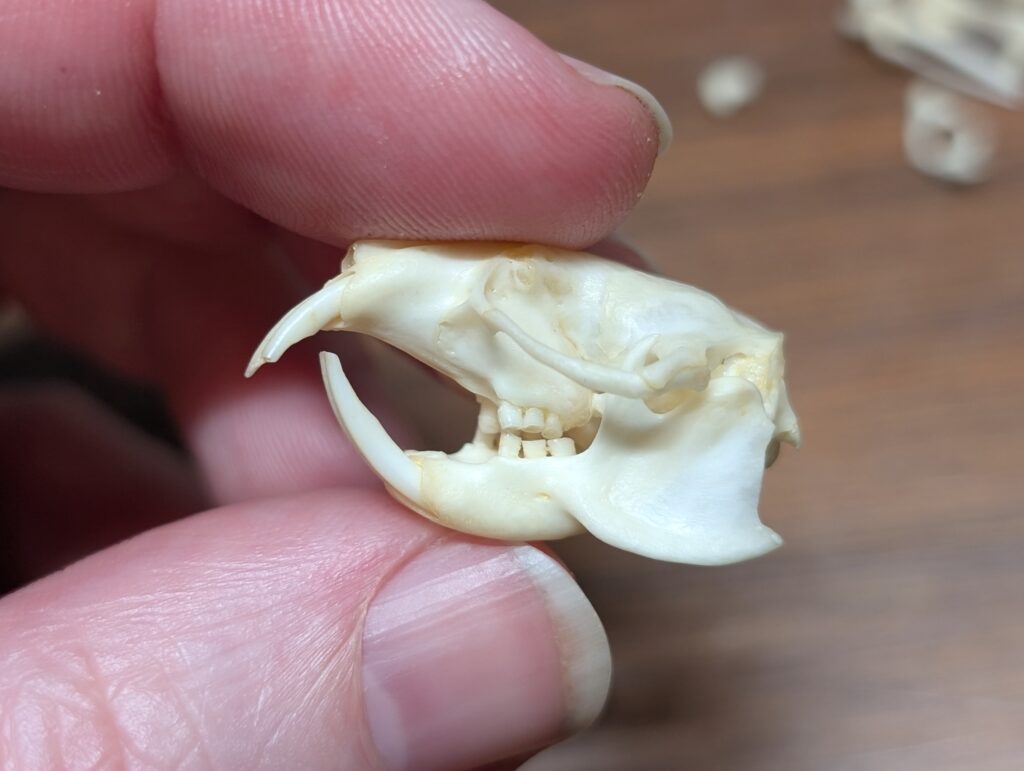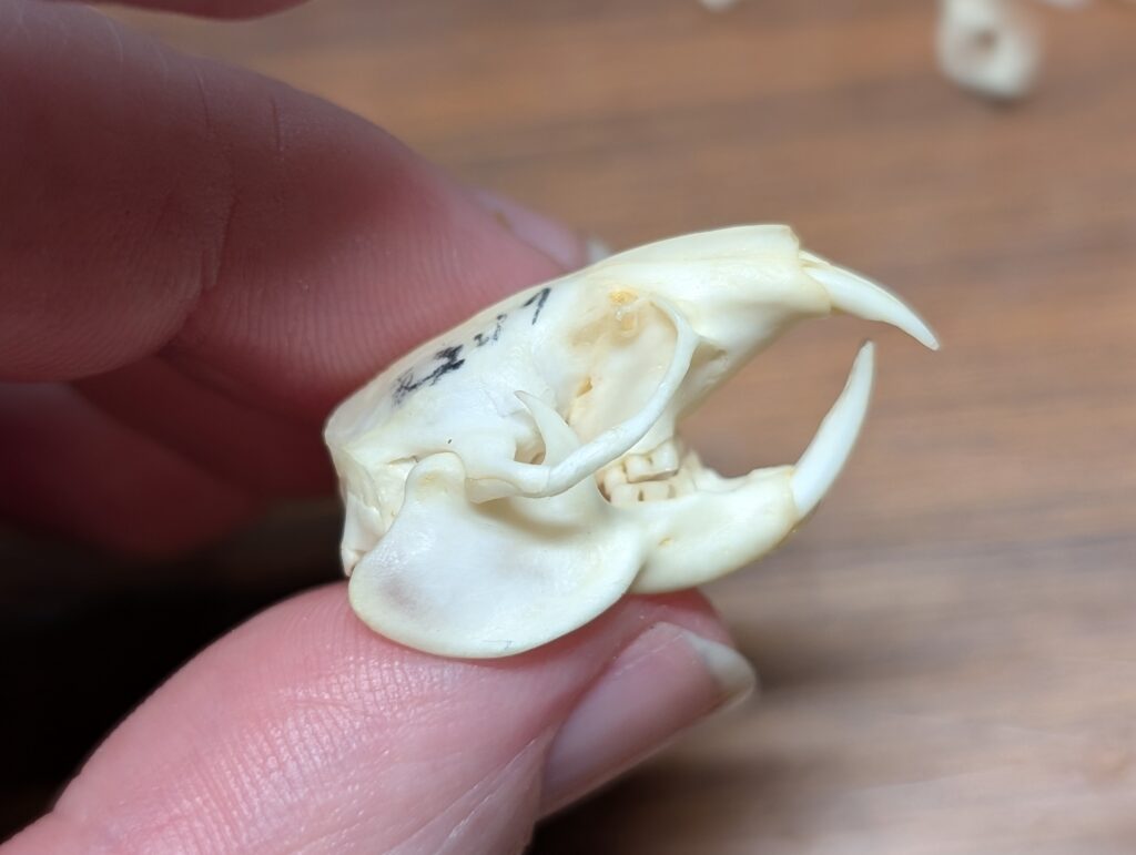 This is the skull and skeleton of a naked mole-rat!