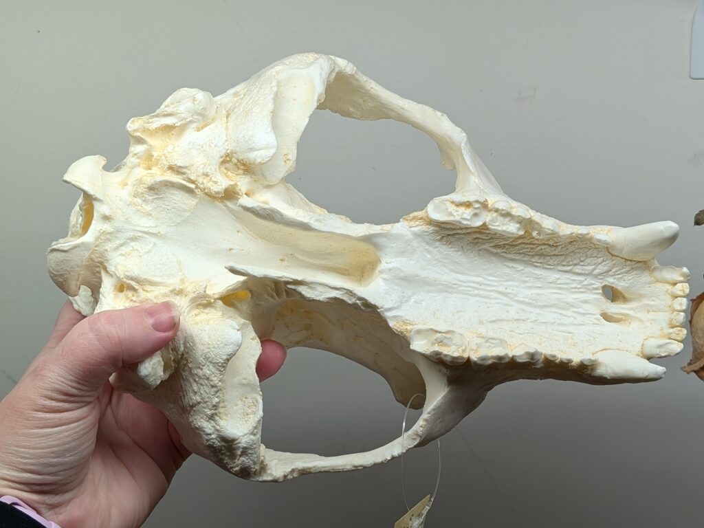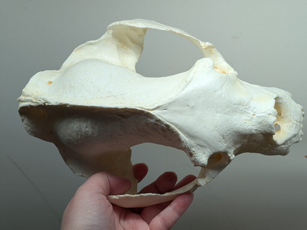 This is a great replica upper skull of a mature male specimen. It is in excellent shape with great details and is priced below retail. Please review all pictures and description for condition.
